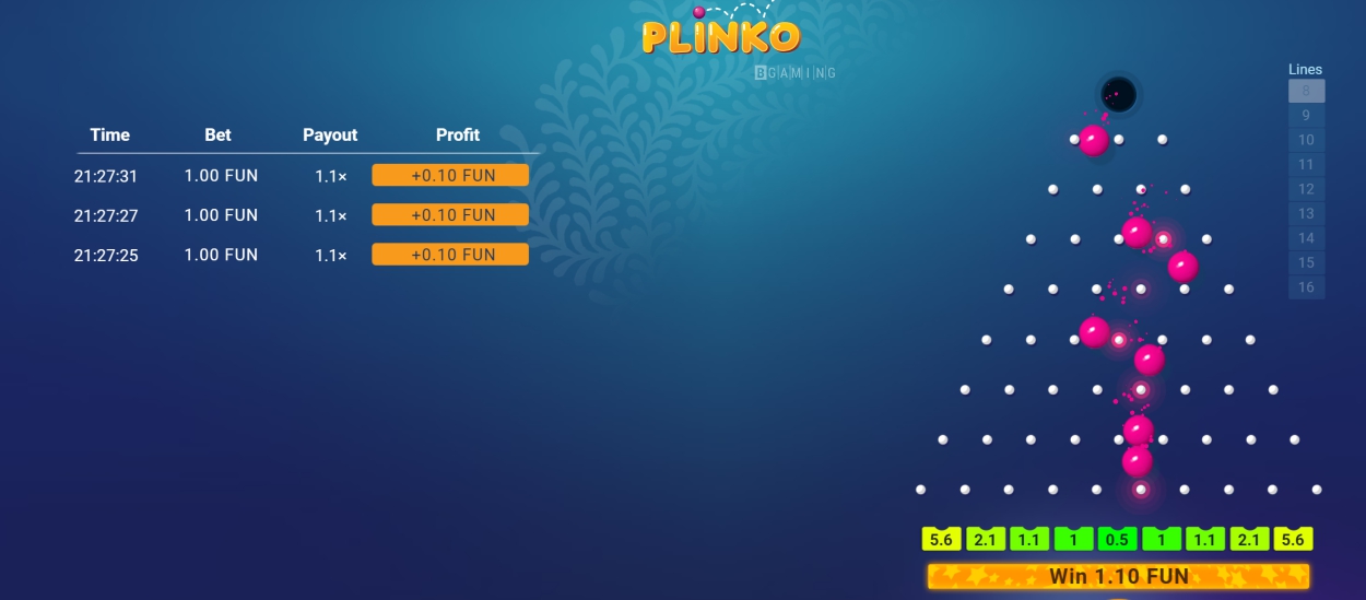 La simplicidad del juego y la anticipación de ver hacia dónde se dirige la ficha hacen que Plinko sea muy entretenido. Además, el juego ofrece bonificaciones especiales que pueden aparecer en cualquier momento, aumentando aún más la emoción.